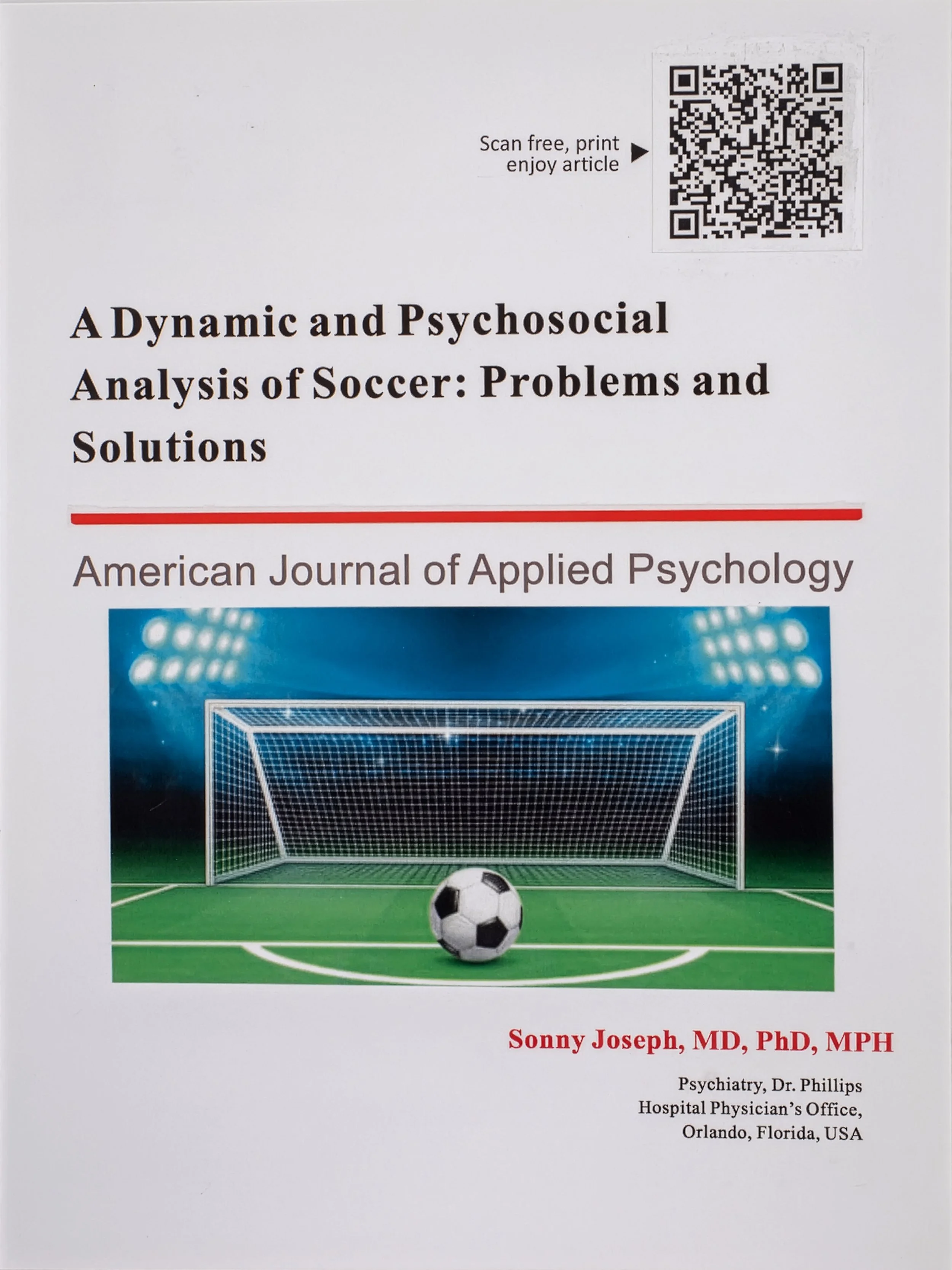 Published a 9-page article on the problems of soccer (known internationally as Football) such as too many fouls, too few goals, excessive physical contact, too many bad calls by the referee, fan violence, player antics and cheating, etc., and their solutions, titled “A Dynamic and Psychosocial Analysis of soccer: Problems and Solutions” by the American Journal of Applied Psychology, 2014. Anyone that likes soccer should find the article interesting and thought- provoking. A major solution to improve the honesty in the game recommended in the article in 2014 was the introduction of video review, finally implemented in 2020. The article may be accessed and printed (free) by activating the QR code below: